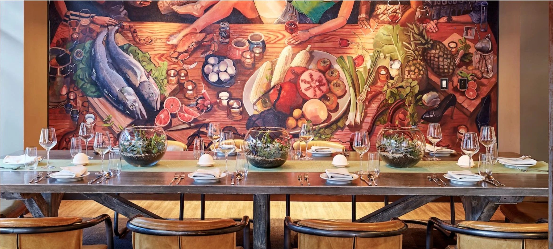 Come to the Scandal Bar, above the front desk of the hotel. Books, singing, art, drinks, good times. This is the last leg of the trip and a home away from home. I worked here for years as a bartender and manager, and did the mural in the restaurant downstairs, Grange.